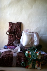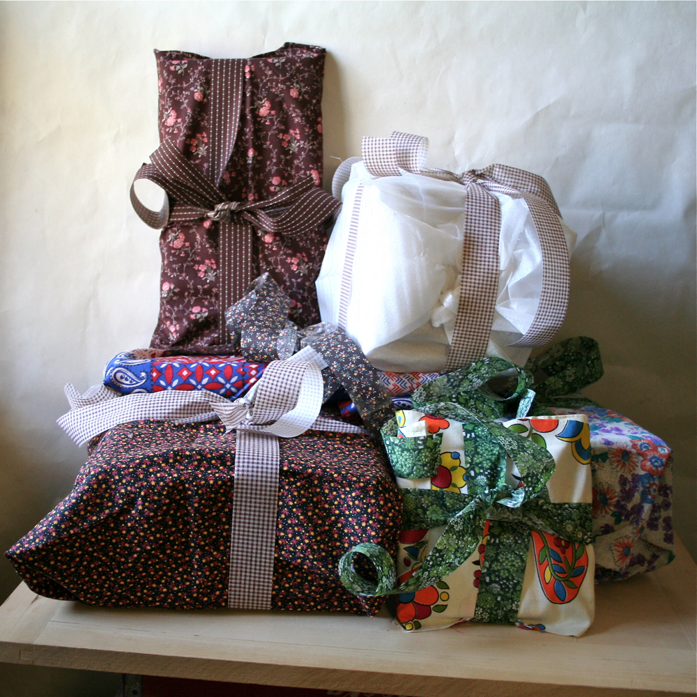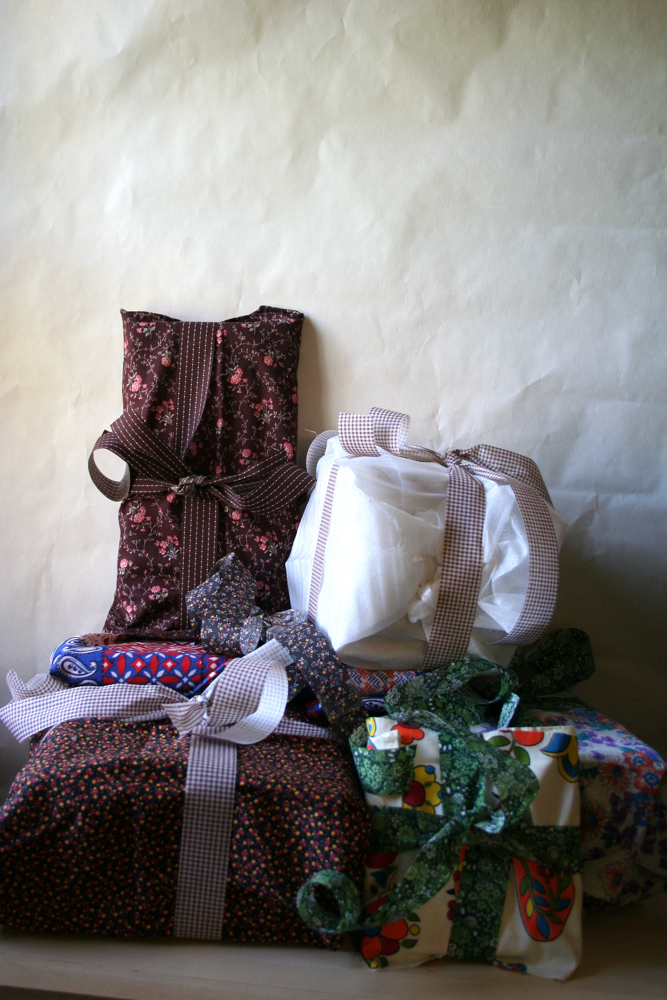 I am very proud of these packages. They made me feel like I was in Little House on the Prairie; wrapped in vintage fabrics and tied with old calico ribbons.